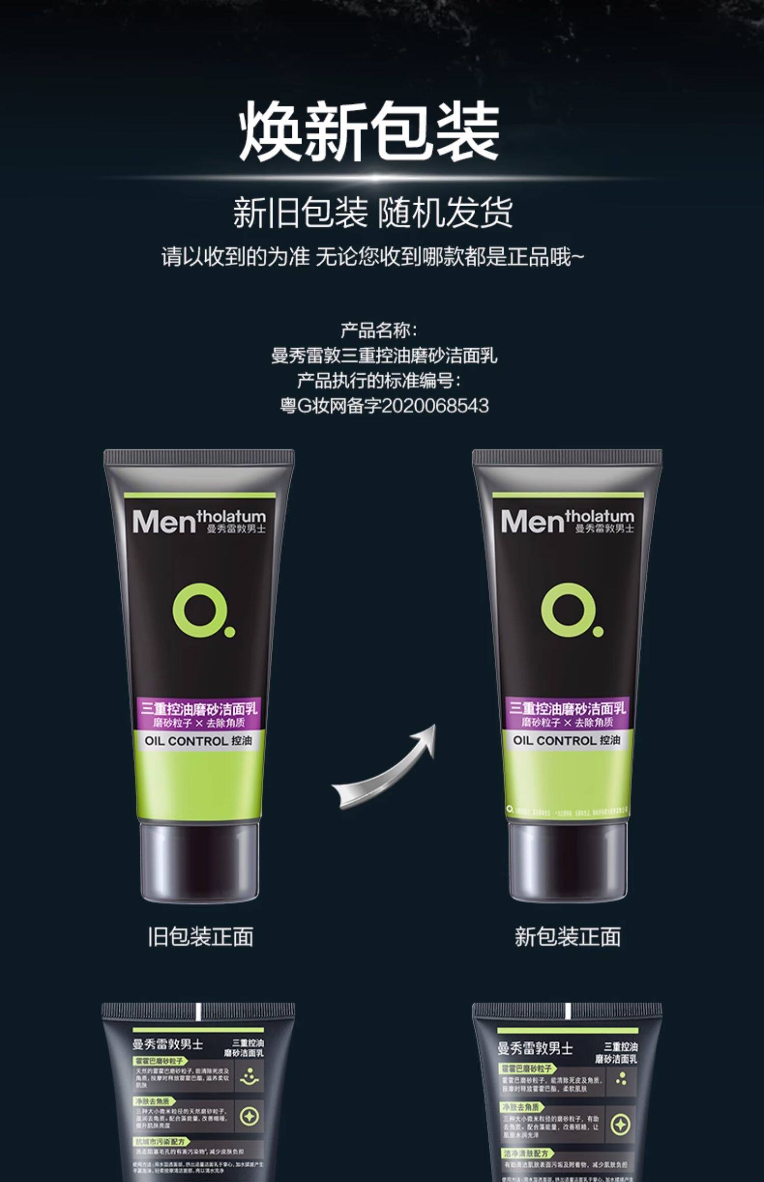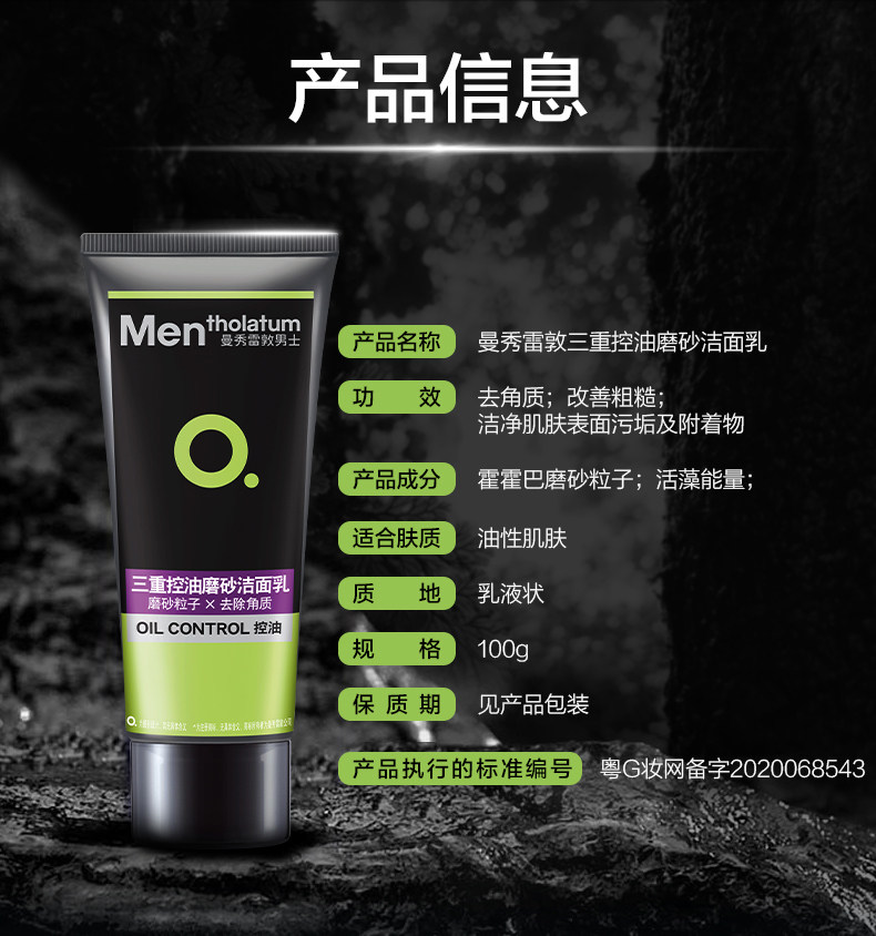 曼秀雷敦男士洗面奶磨砂颗粒去角质控油洁面乳膏旗舰店官方正品